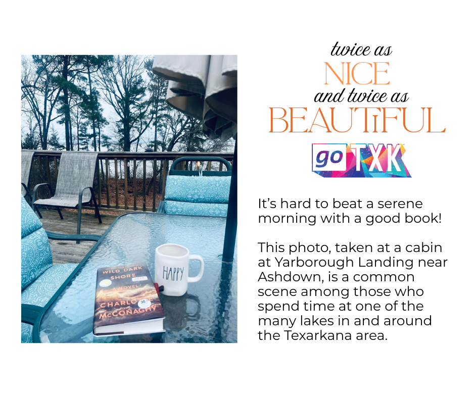 It’s hard to beat a serene morning with a good book! This photo, taken at a cabin at Yarborough Landing near Ashdown, is a common scene among those who spend time at one of the many lakes in and around the Texarkana area.