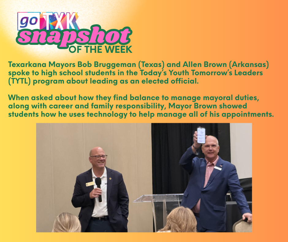 Texarkana Mayors Bob Bruggeman (TX) and Allen Brown (AR) spent time with local students in the TYTL program, sharing insight on leadership, balance, and showing up for your community.